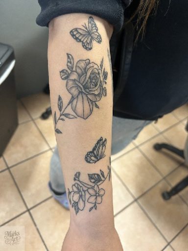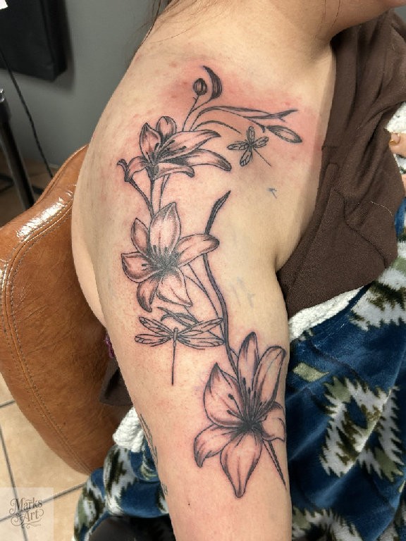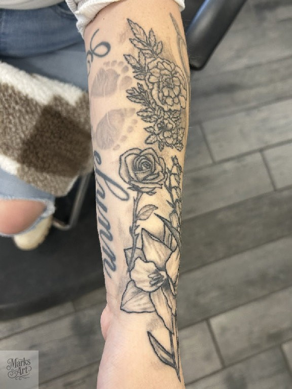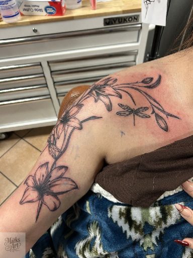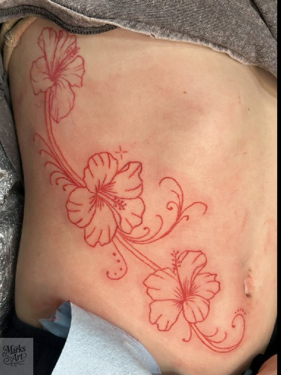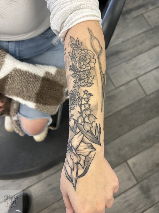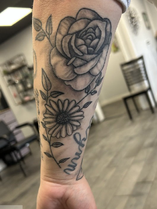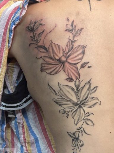 Floral tattoos ranging from fine line designs to more detailed black and grey and color work. Each piece is designed to flow with the body and fit the client.